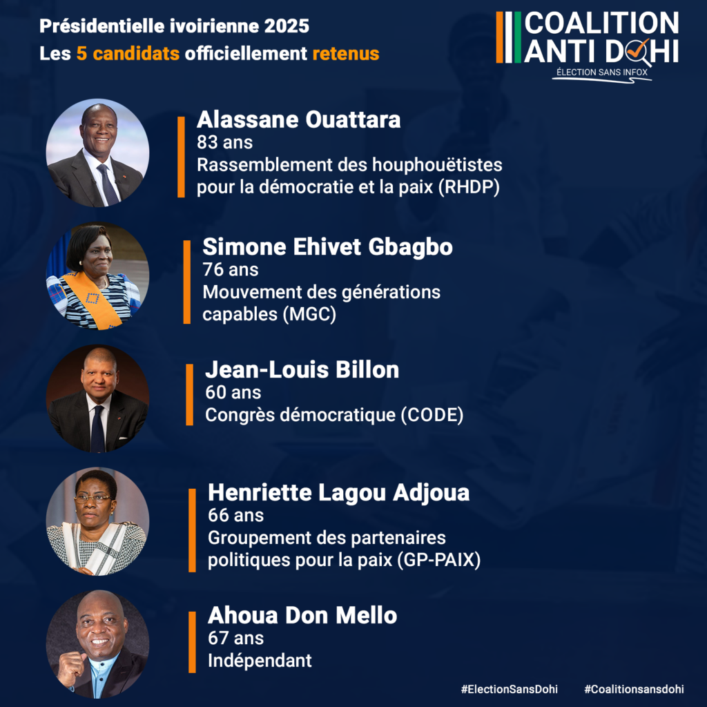 Côte d’Ivoire : ce qu’il faut savoir sur les cinq candidats en lice pour la présidentielle d’octobre2025