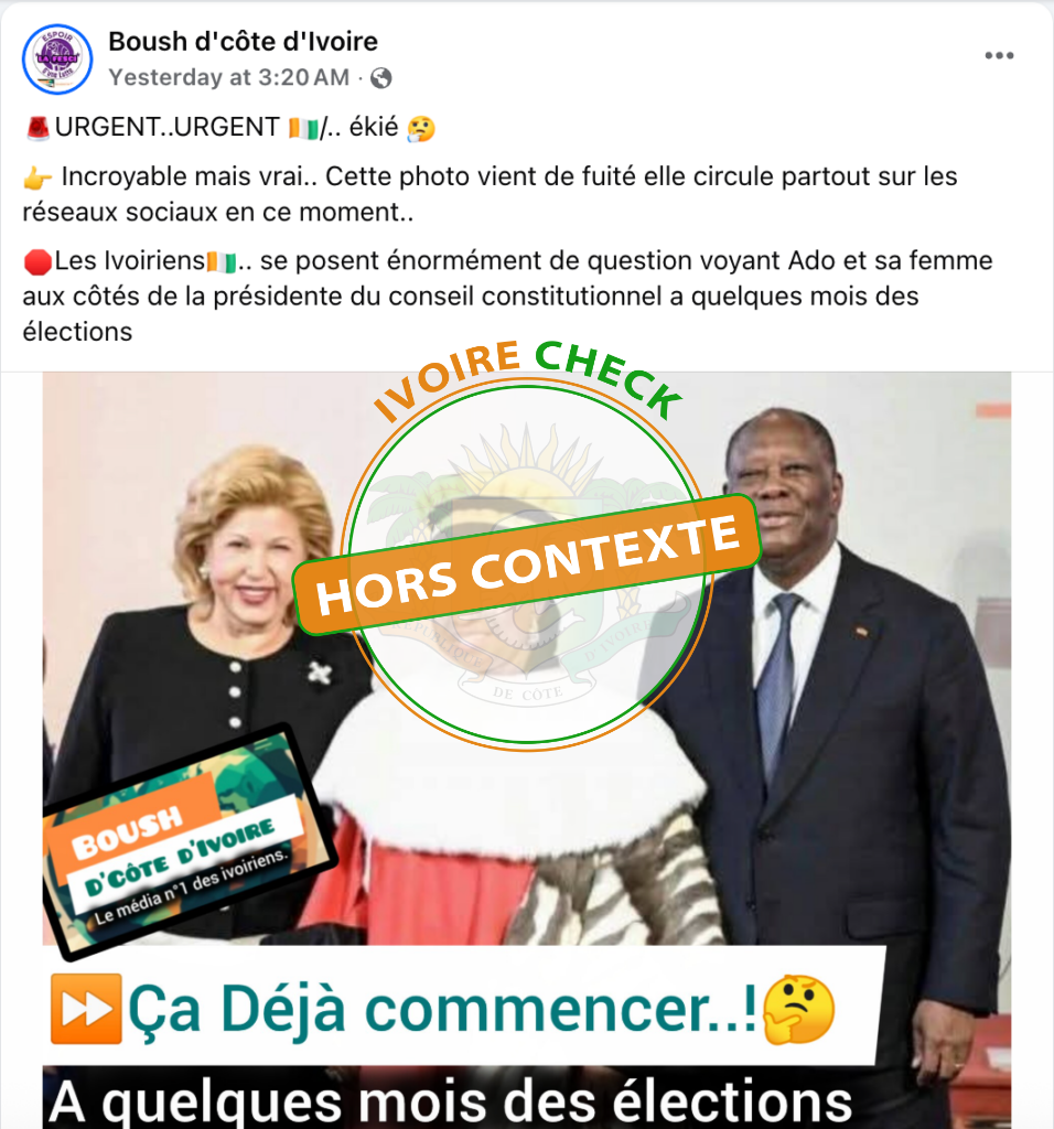 HORS CONTEXTE : Cette image de la présidente du Conseil constitutionnel ivoirien avec le couple présidentiel ne date pas de 2025