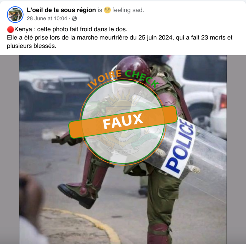 FAUX : Cette photo n’a pas été prise lors des manifestations du 25 juin 2024 au Kenya