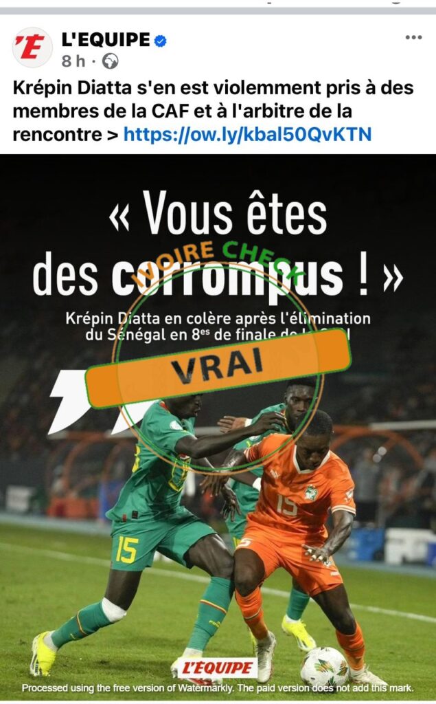 Juste après la défaite du Sénégal en huitième de finale de la CAN 2023 face à la Côte d’Ivoire, de nombreuses pages Facebook ont indiqué que des...