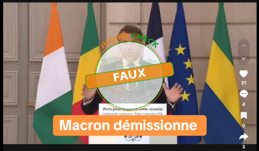 MANIPULÉE : Emmanuel Macron n’a pas annoncé qu’il viendrait en Côte d’Ivoire pour devenir conseiller spécial