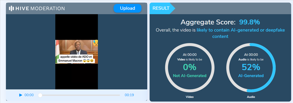 IvoireCheck a vérifié un post TikTok prétendant qu’une discussion en vidéo avait eu lieu entre Alassane Ouattara et Emmanuel Macron sur le quatrième mandat et l’a trouvé MANIPULE.